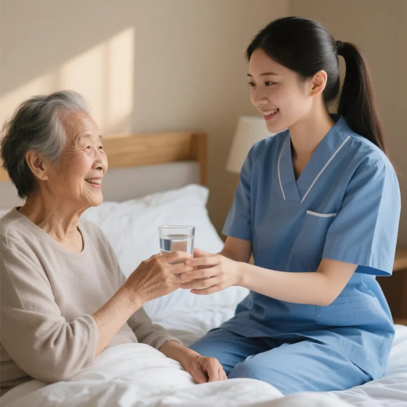 保姆冯阿姨在细心的照顾老人